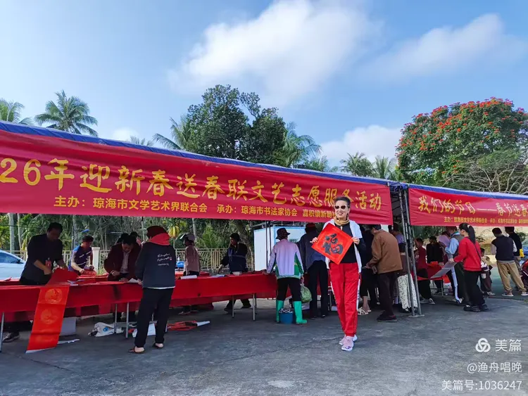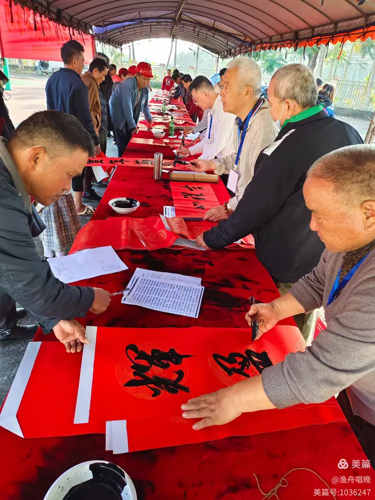 马年春节临近,城乡喜气洋洋。立春当天上午,在市书法家协会会长石江雄先生的带领下,近三十位新老市民书法家来到琼海市嘉积镇朝标社区、新朝村,免费为居民们书写福字和春联。这是琼海市文学艺术界联合会主办、市书法家协会和两家社区(村)承办的“我们的节日——春节送春联”活动。在这些书法家中,有三位“候鸟”书法家的加入,他们是琼海市群英候鸟人才工作站推荐的于文阁、于俊敏、李扎西,分别来自黑龙江省哈尔滨市、佳木斯市和青海省西宁市。